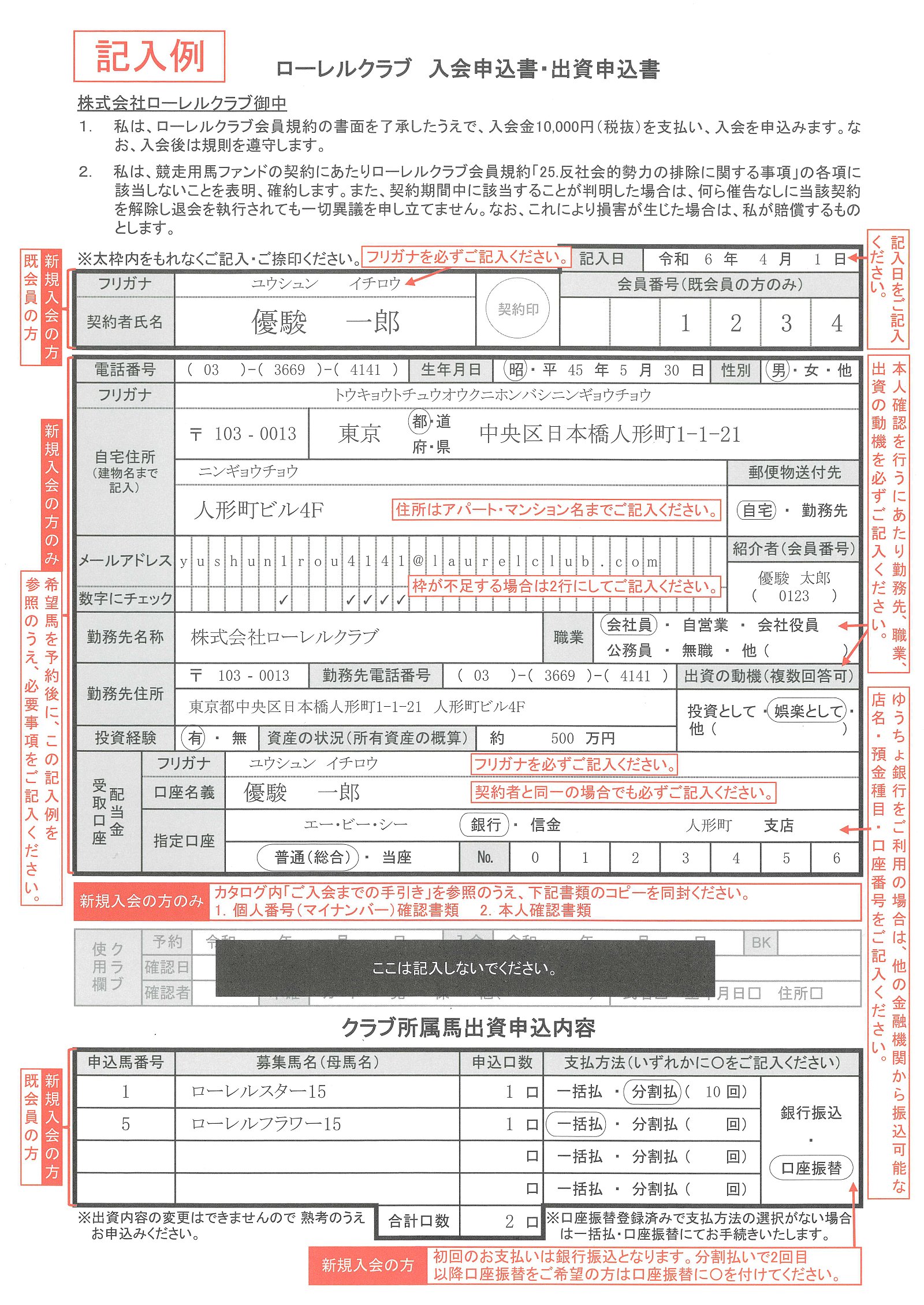 資料請求 STEP01 ご希望の募集馬カタログ(無料)を選択してください。 同一カタログの重複請求はご遠慮くださいますようお願いします。 2025年10月カタログ掲載会報誌 2024年産(1歳時)№16~№17 請求する 請求しない 2025年秋季カタログ 2024年産(1歳時)№1~№152025年産(当歳時)№1~№6 請求する 請求しない 2025年春季カタログ 2023年産(2歳時)№1~№19 請求する 請求しない 2024年秋季カタログ 2023年産(1歳時)№1~№172024年産(当歳時)№1~№6 請求する 請求しない 入会申込書(兼出資申込書) ご予約日または資料到着後10日以内にご送付ください 請求する 請求しない STEP02 必要事項をご記入後、確認ボタンを押してください。 *は必須項目です。 お名前* フリガナ* 郵便番号* ご住所* お電話番号* - - E-mail* 年齢* 性別* 男性 女性 その他 無回答 ご覧になった媒体/ご紹介者等* 選択してください 会員様紹介 弊社WEBサイト 弊社公式!? X 一口馬主DB netkeiba.com 週刊競馬ブック 週刊ギャロップ 東京スポーツ その他 会員紹介を選択された方は、紹介者ご氏名 その他を選択された方は、その媒体名をご記入ください ご職業* 選択してください 会社員 公務員 団体職員 自営業 会社役員 会社経営 契約・派遣社員 パート・アルバイト 主婦・主夫 年金受給者 学生 無職 その他 当クラブにご意見・ご質問などございましたら、こちらへどうぞ。 ご意見・ご感想 ※送信前に各入力内容を再度ご確認ください。 ※土曜・日曜・祝日・休日にお申込された場合は、翌営業日の受付となりますので予めご了承ください。 ※現在、多くの資料請求を頂戴しており、カタログ発送までに少々お時間をいただいております。あらかじめご了承くださいますようお願いいたします。