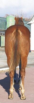 新冠町のパッショーネにて、屋内角馬場6000mと屋内坂路1本を15-15のキャンター調教を行なっています。代表は「馬体の全体的な骨格にまだ幼い感じが残っているので、調教負荷を高めすぎないように注意しています。無理がかからない程度の負荷を与えて、馬体成長を促します」と見通しを語りました。その後も同じメニューを継続し「屋外坂路の深い砂に戸惑っている感じの走りなので、馬なりに登坂させています。ウッドチップの屋内坂路よりも負荷がかなり高いので、徐々に慣れてくれればと思います」とコメント。杉山(佳)師は「馬体の成長状態はまだこれからといった印象だけど、コンディションは良好です。低重心な体型をしているので、短い距離戦で活躍してくれる馬だと思っています」と話しました。測尺は体高152cm(±0)・胸囲178cm(-1)・管囲20cm、馬体重は433kg(±0)です。なお、本馬の父ブリックスアンドモルタルの産駒ダイヤモンドノットがファルコンS(G3・3月21日・中京11R・芝1400m)で、フォージドブリックがペガサスジャンプS(OP・3月21日・中山8R・障3350m)で優勝しました。