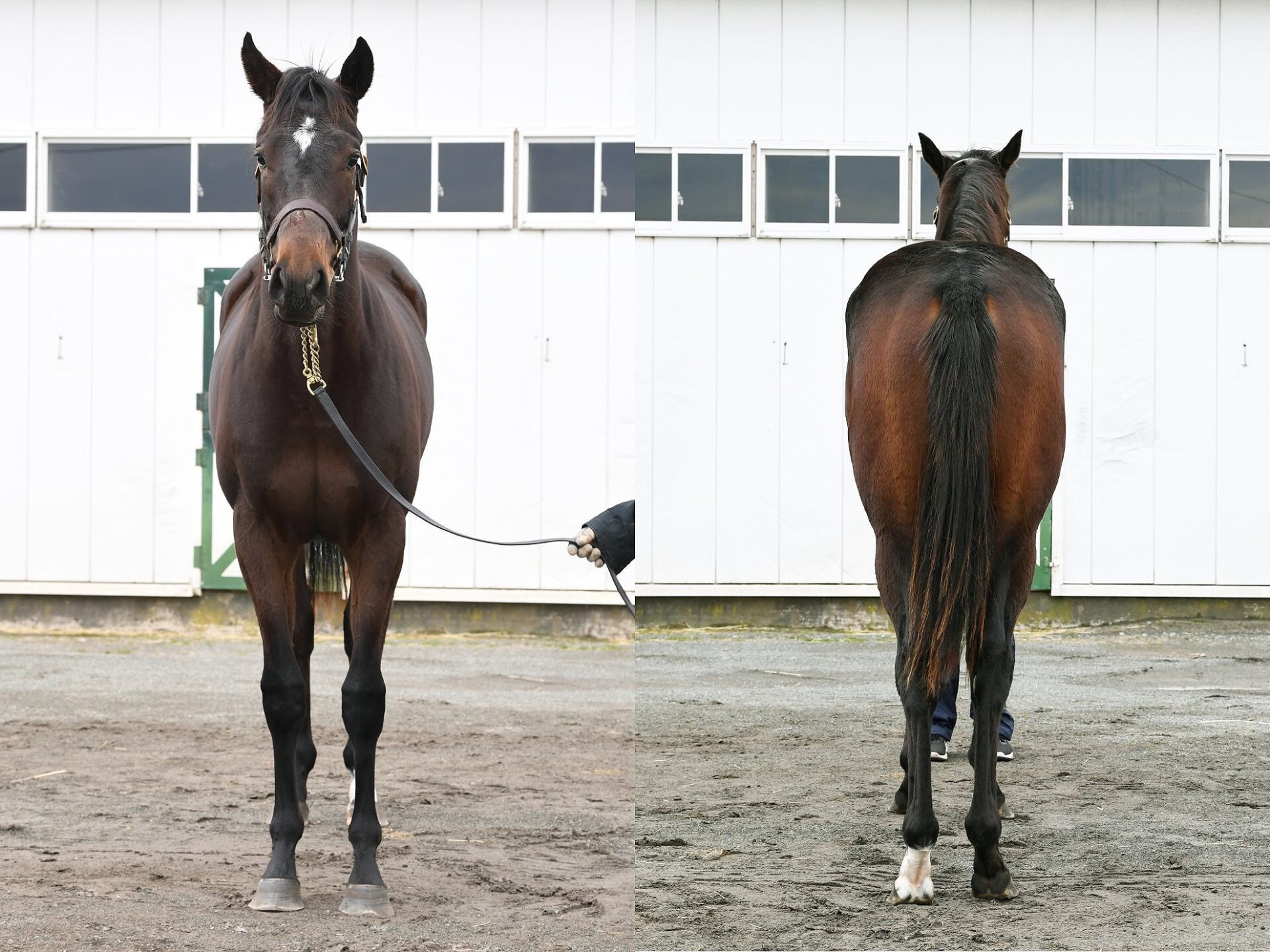 新冠町の福地トレーニングファームにて、屋外坂路2本を18秒ペースのキャンター調教を行なっています。代表は「屋外コースでの調教に進めてからは、気性面に少しピリピリしたところが出てきたけど、体力が付くにつれて治まってくると思います。馬房内では大人しく、飼葉食いに問題がないので心配はしていません。動きのほうは、運動神経が良いのでとても軽快です」と話しています。測尺は体高161cm(+1)・胸囲183cm(+2)・管囲20cm、馬体重は466kg(+5)です。なお、本馬の父ミッキーロケットの産駒ミッキーゴージャスがキャピタルS(L・11月29日・東京11R・芝1600m)で優勝しました。