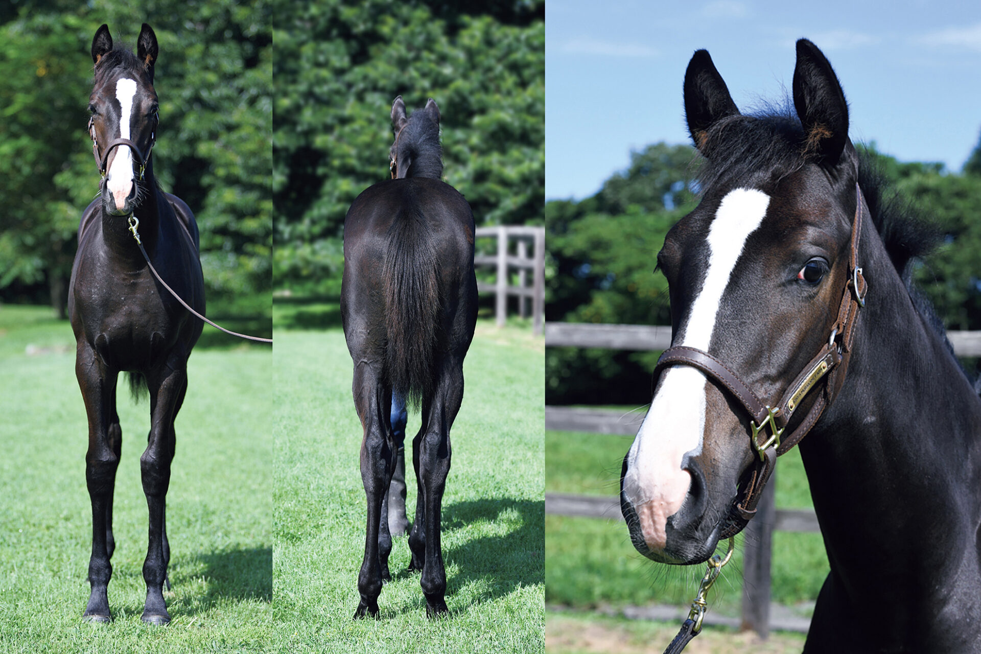 偉大な父にそっくりの面構え、そして黒光りする馬体が、明るい未来を約束している。父のイクイノックスはG1を6連勝して現役生活を締めくくり、レーティング世界1位を獲得した歴史的名馬。当然ながら種牡馬としても大人気で、7月のセレクトセールでは上場された24頭の産駒のうち23頭が落札された。平均価格は1億5500万円、牝馬に限っても9837万円だから、国内最高額の種付料2000万円に相応しい、もしくはそれ以上の評価を得たといえる。一方の母は米国で1勝止まりだったが、ワールドクラスの良血馬だ。叔父にはベルモントSなどG1・2勝のパレスマリス、天皇賞・春を制したジャスティンパレス、ステイヤーズS覇者のアイアンバローズなど、国内外の活躍馬がズラリ。この馬を繁殖として導入した村上欽哉牧場の慧眼には驚かされる。そんな生産者の熱意も伝わったのか、本馬は良血馬がひしめく父の初年度産駒の中でも屈指の好馬体を誇り、身のこなしは実にしなやか。加えて性格が穏やかで、スタッフの手を煩わせることは皆無だから、優等生の中の優等生といえる。確かに8000万円の募集価格は安くないが、それも納得の逸材。クラシックのど真ん中を、胸を張って突き進んでほしい。